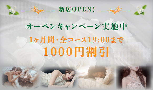 新規キャンペーン実施中!18:00から22:00までご来店のお客様、120分以上コース更に1000円オフ実施中。